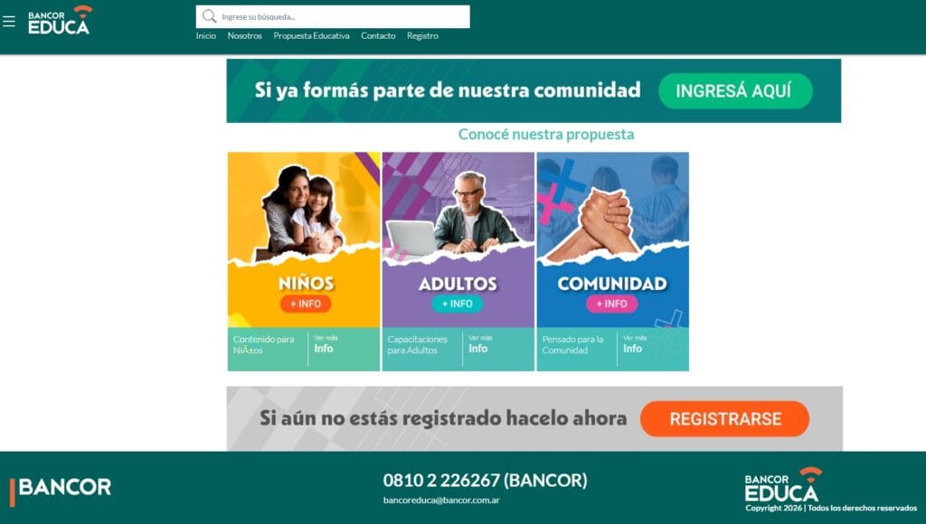 Bancor Educa es la plataforma de educación financiera de Bancor, creada para acercar contenidos, herramientas y recursos útiles a la comunidad. A través de propuestas formativas pensadas para distintos públicos, busca acompañar a personas y organizaciones en la toma de mejores decisiones financieras, promoviendo el progreso individual y el desarrollo social.